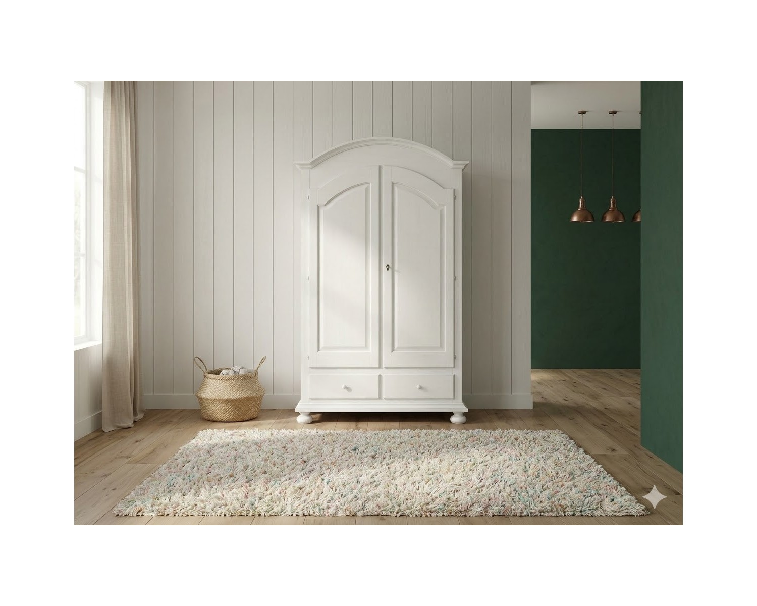Mobile armadio 2 ante e 2 cassetti in massello e agglomerato finitura laccato bianco