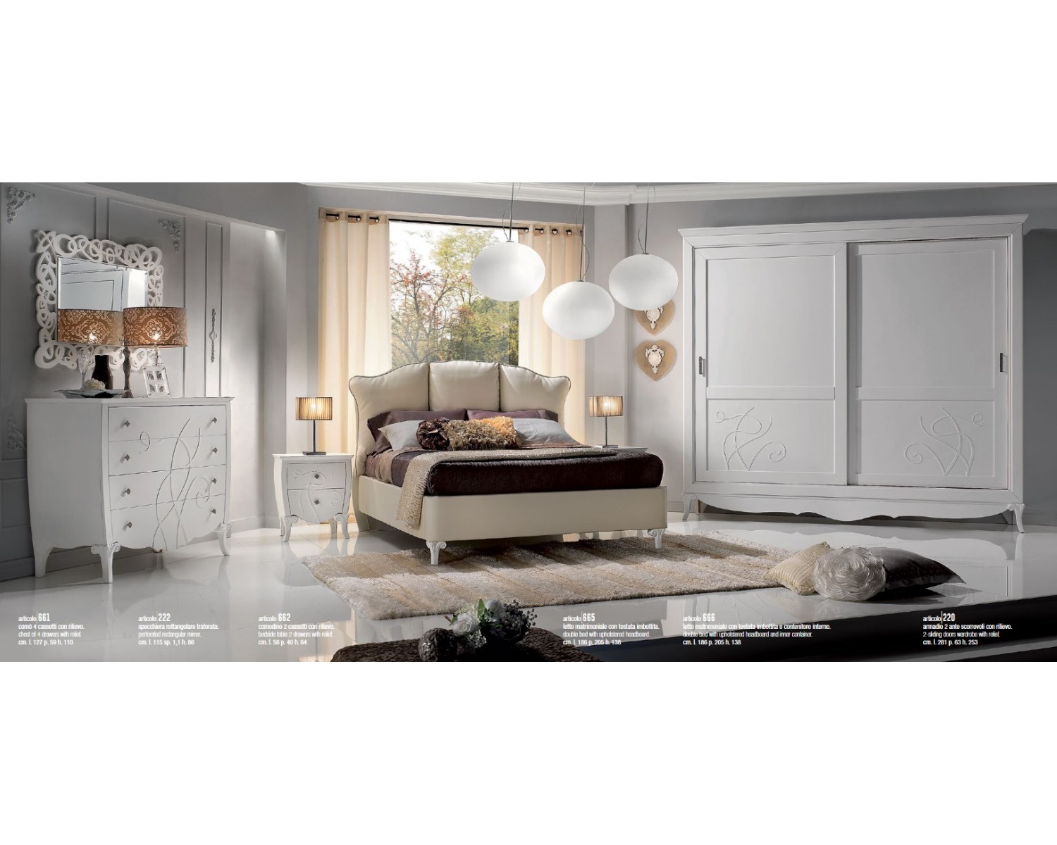 ARMADIO + LETTO + COMO + 2 COMODINI (su richiesta letto a contenitore supplemento euro 480)