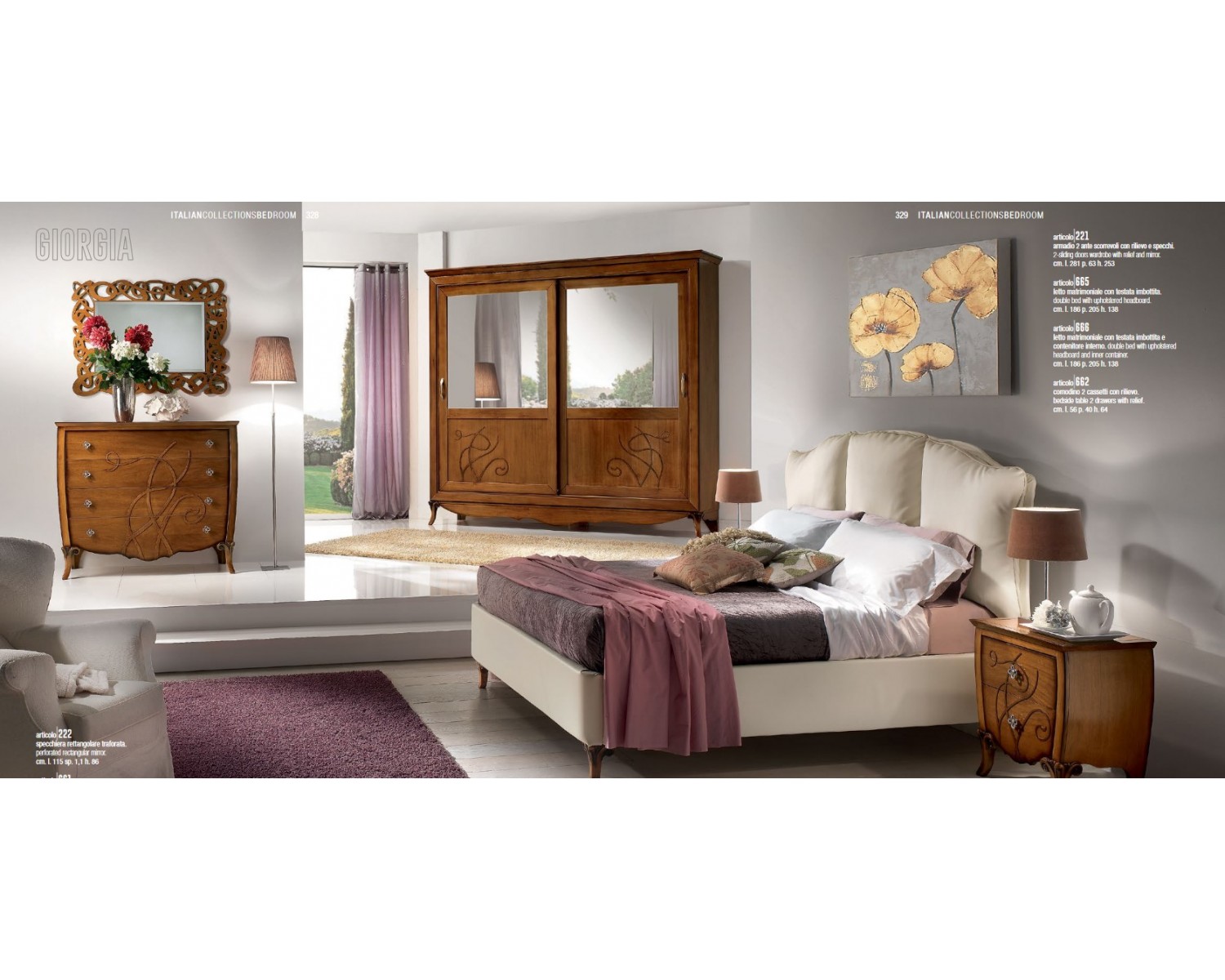 CAMERA COMPLETA LEGNO MASSELLO CON INTAGLIO e rilievi ARMADIO ANTE SCORREVOLI LETTO COMO E COMODINI