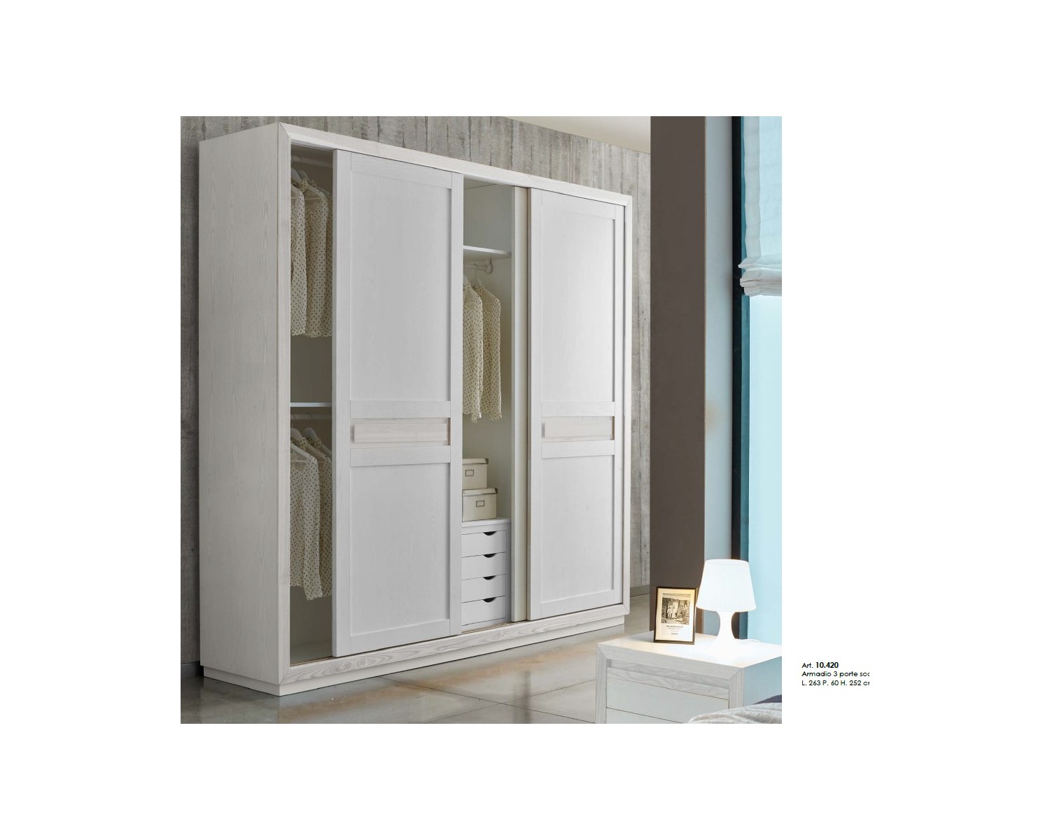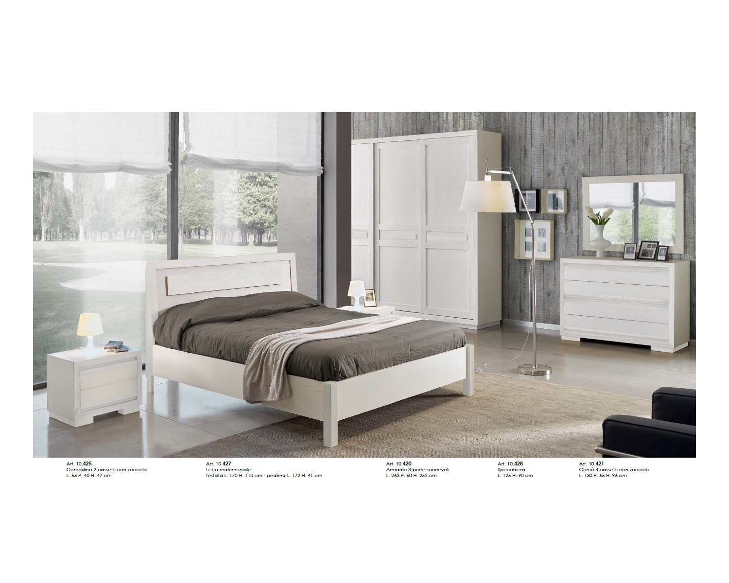 Art. 10.425 Comodino 2 cassetti con zoccolo L. 55 P. 40 H. 47 cm Art. 10.427 Letto matrimoniale testata L. 170 H. 110 cm - pediera L. 172 H. 41 cm rete 195x160 cm Art. 10.428 Specchiera L. 125 H. 90 cm Art. 10.420 Armadio 3 porte scorrevoli L. 263 P. 60 H. 252 cm Art. 10.421 Comò 4 cassetti con zoccolo L. 130 P. 55 H. 96 cm