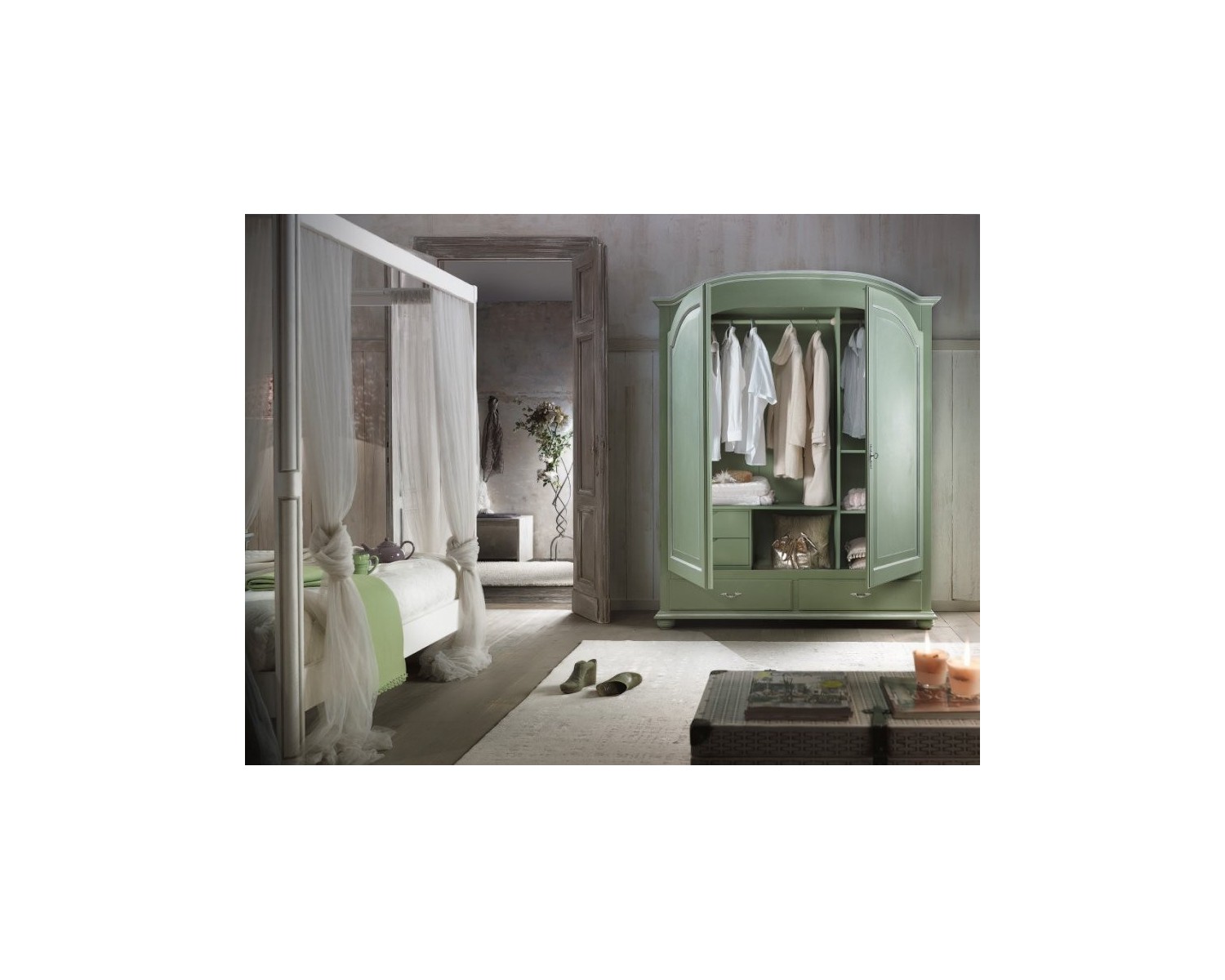 Elegante armadio 2 ante battenti 2 cassetti in legno massello finitura VERDE anticato - possibile produrre in vari colori -