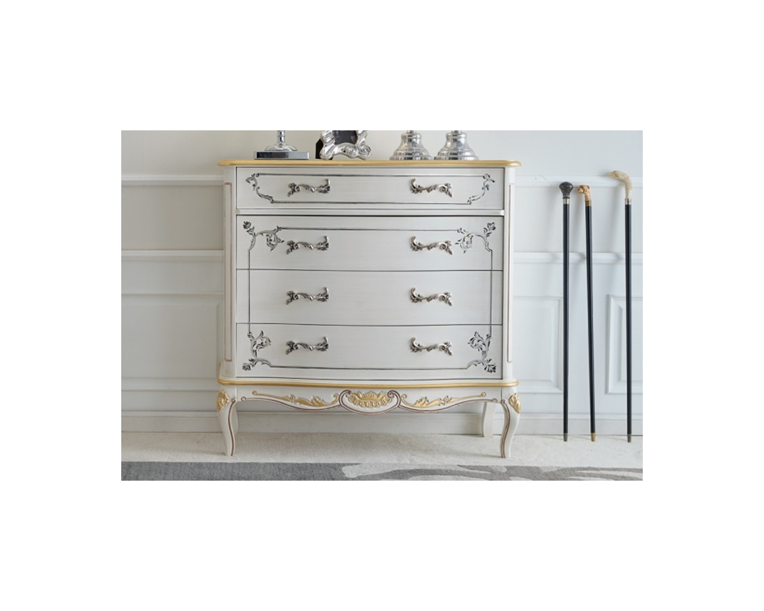 COMO' 4 CASSETTI LEGNO MASSELLO CON INTARSIO LACCATO BIANCO DECORATO A MANO PROFILI ORO COME FOTO - DIMENSIONI L101 P46 H100 - MADE IN ITALY - TEMPI DI PRODUZIONE 20 GIORNI