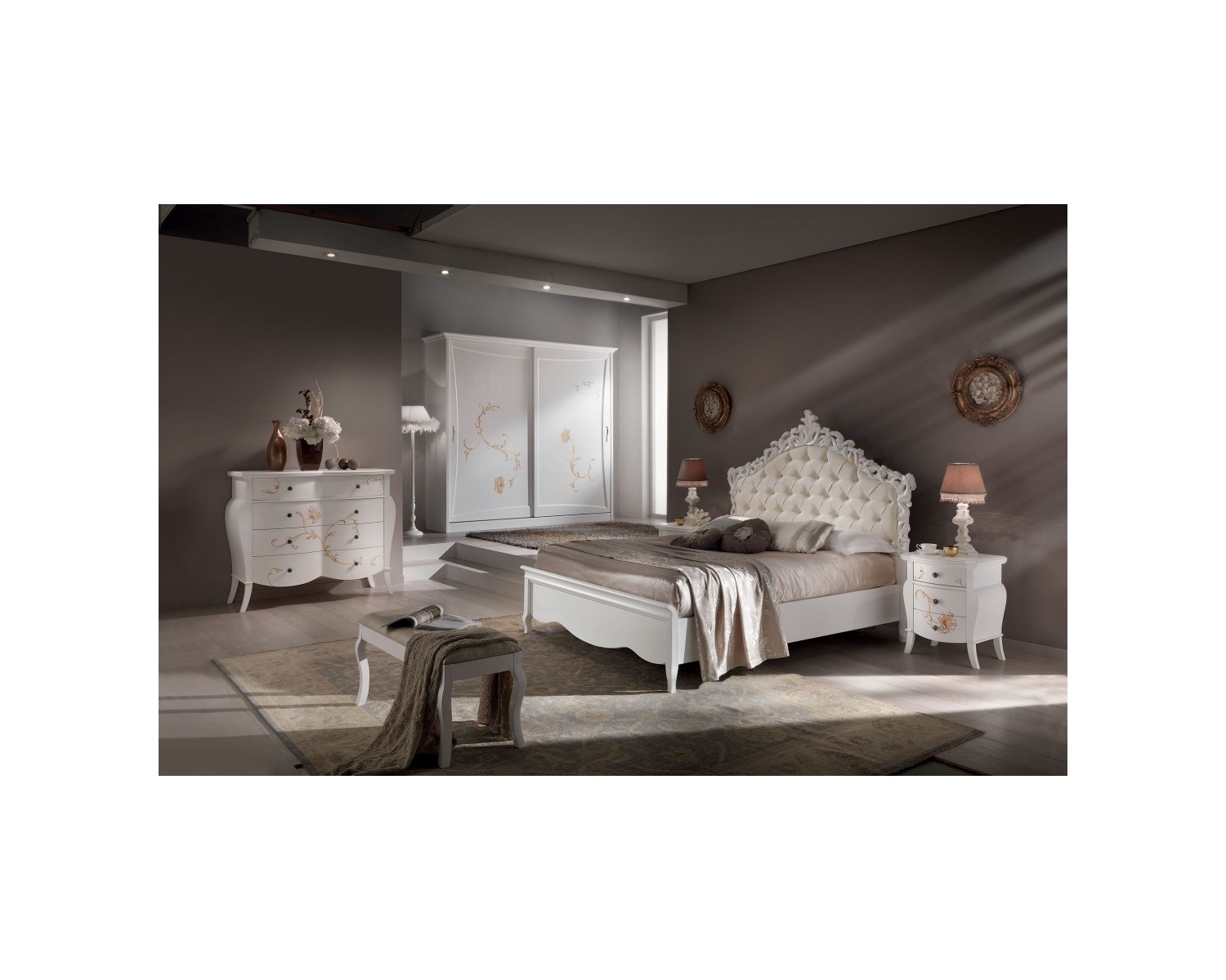 CAMERA COMPLETA LEGNO MASSELLO con decori a mano ARMADIO ANTE SCORREVOLI LETTO COMO E COMODINI