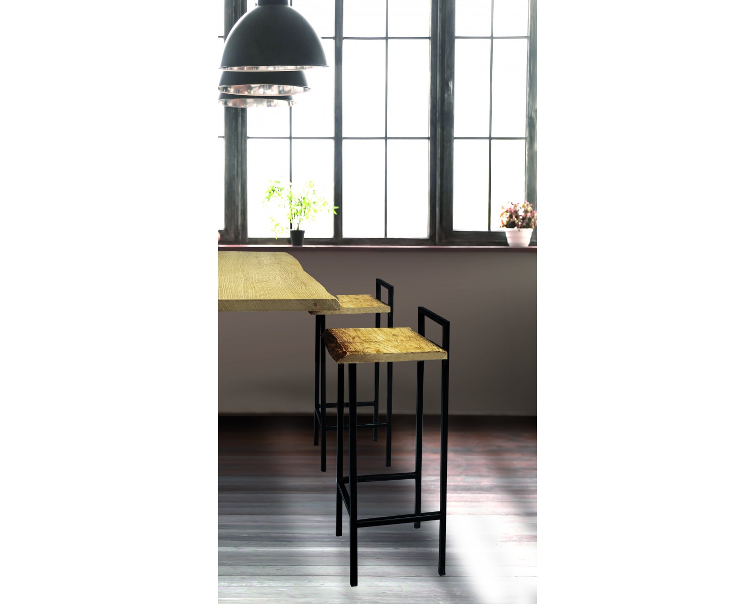 SGABELLO FRASSINO T. NATURALE, GAMBE FERRO ANTRACITE35x36x89