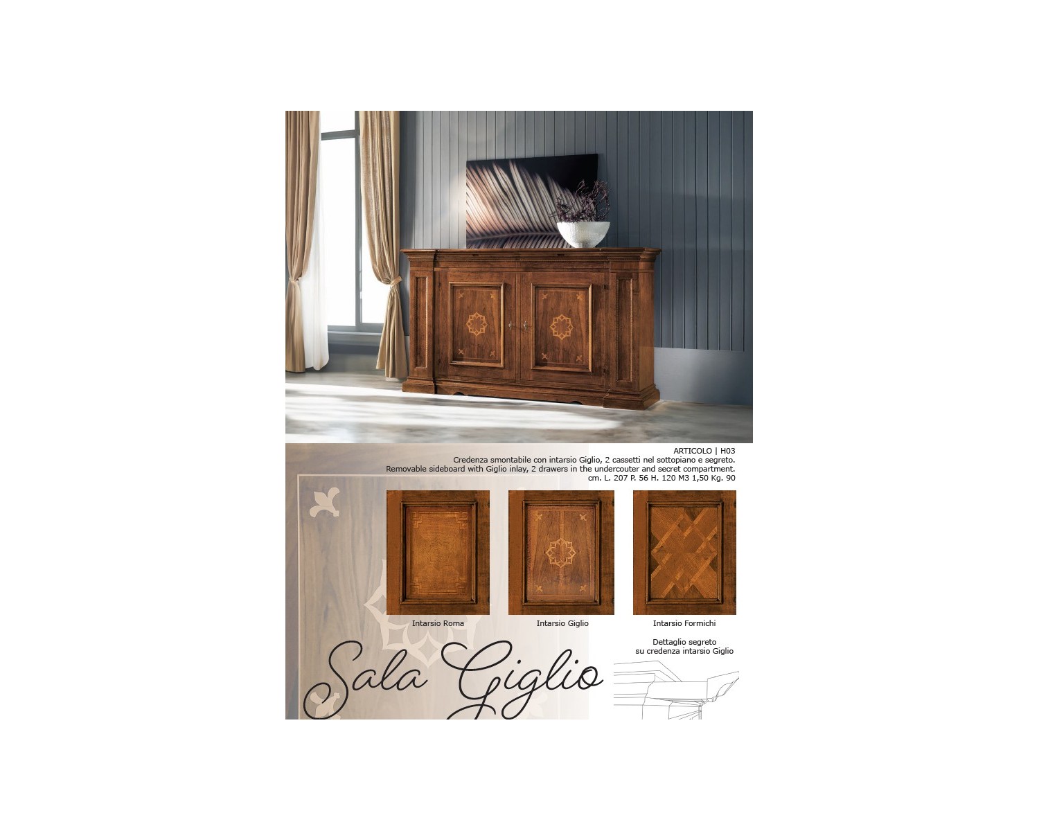 È possibile produrre la credenza con 3 diverse tipologie di intarsio (vedi immagini).