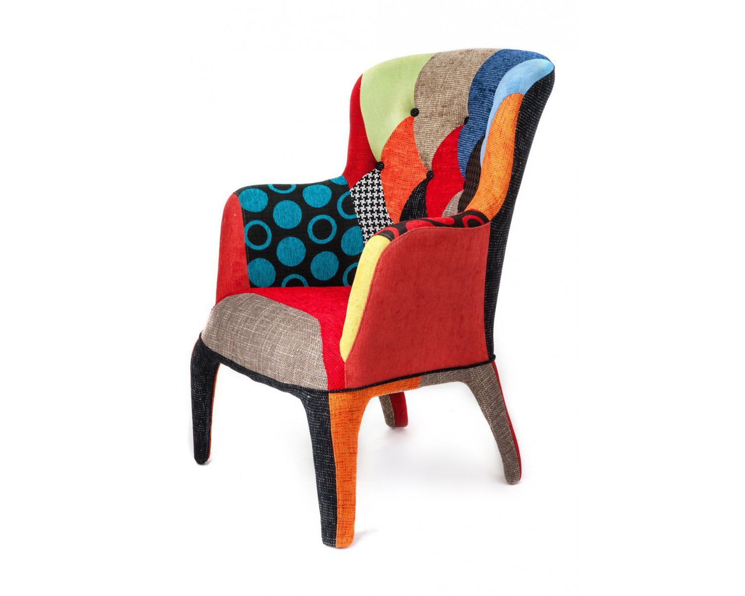 POLTRONA IMBOTTITA FODERATA IN TESSUTO PATCHWORD - TUTTA COMPLETAMENTE FODERATA