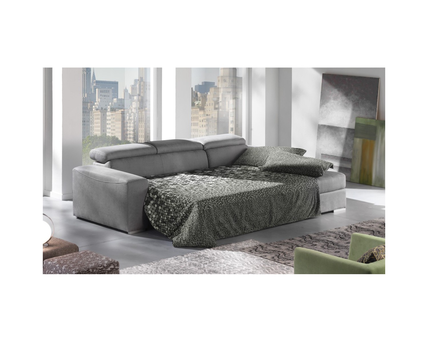 DIVANO CON PENISOLA CONTENITORE CON PANCHETTA L 270 P163 H 75-94 CM NON SFODERABILE - struttura: masselli portanti in abete - cuscini: in poliuretano espanso densita 28 kg - rivestimento: in tessuto a scelta- tempi di consegna: 45 giorni