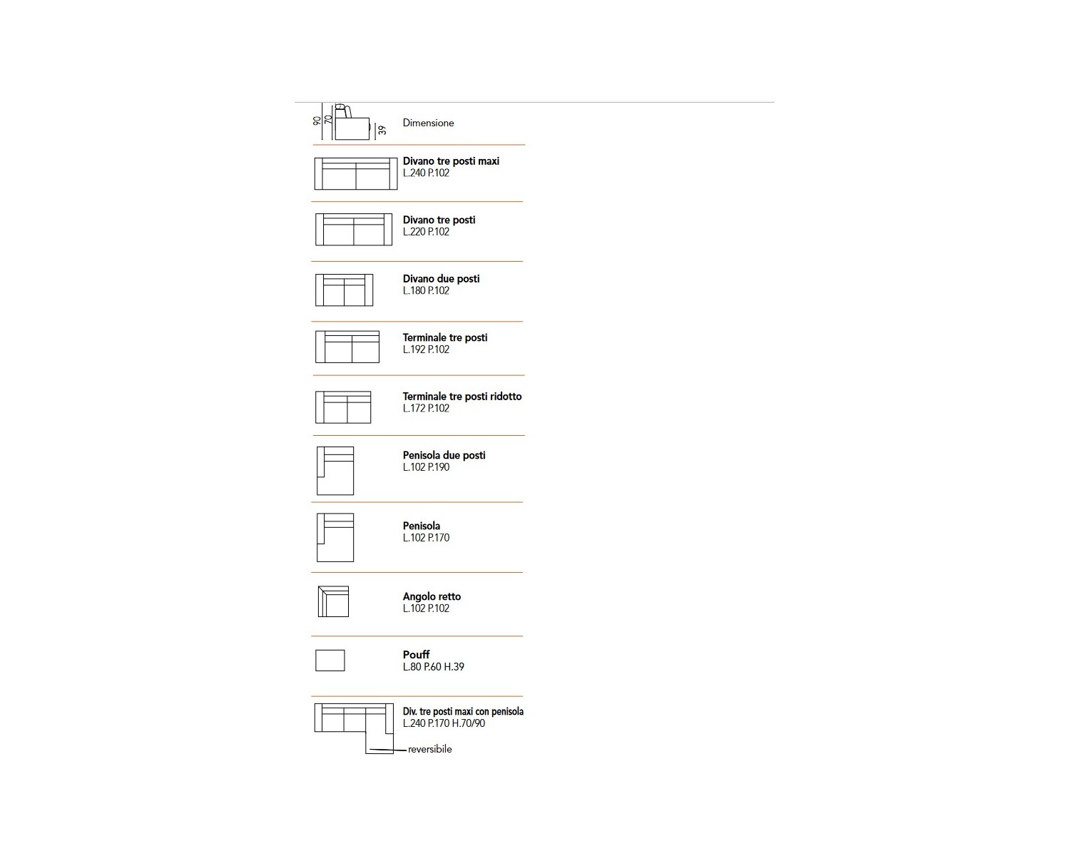 salotto design made in Italy - divano varie dimensioni - vari colori