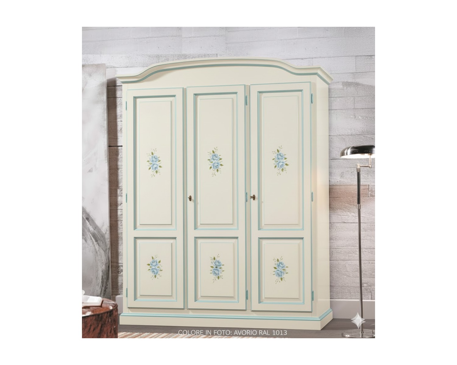 Elegante armadio in legno massello, decorato a mano, disponibile in diversi colori. Questo armadio artigianale combina funzionalità e stile, offrendo ampio spazio per riporre abiti e accessori. Perfetto per camere da letto classiche, ambienti rustici, provenzali o shabby chic.