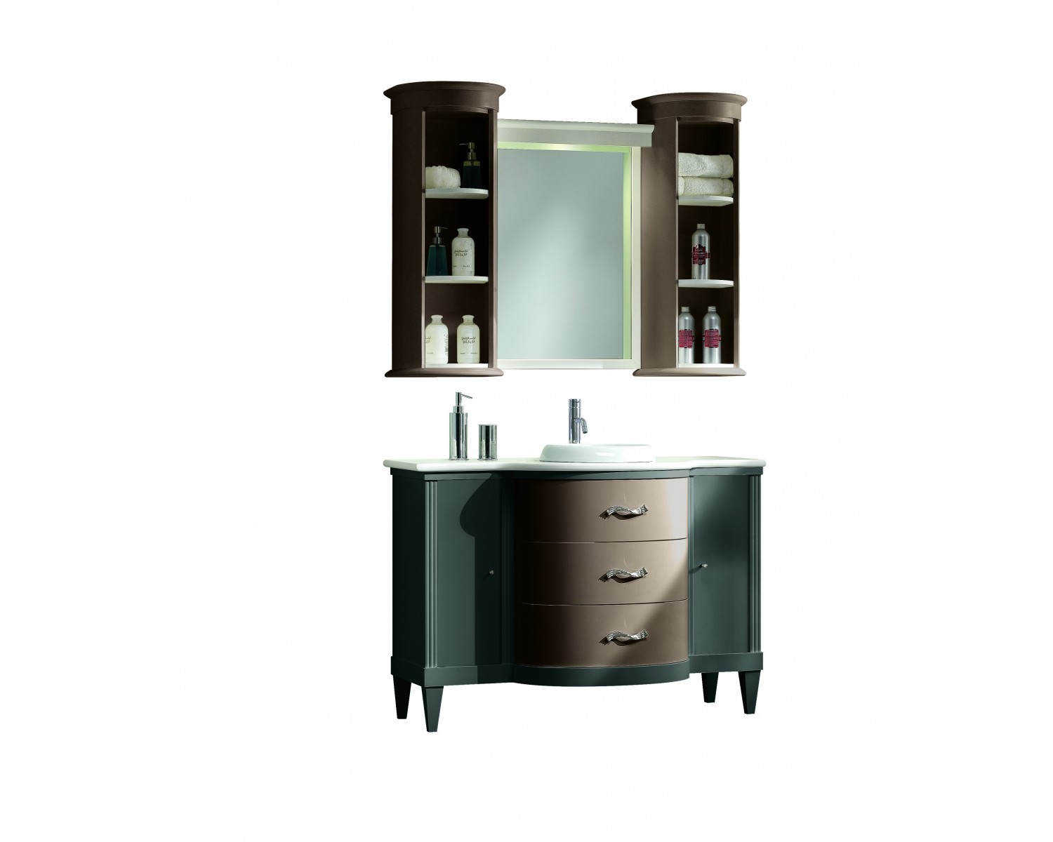 Mobile bagno in legno con specchio completo con pensili