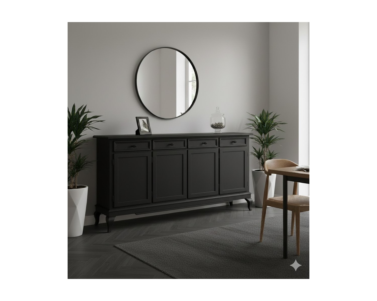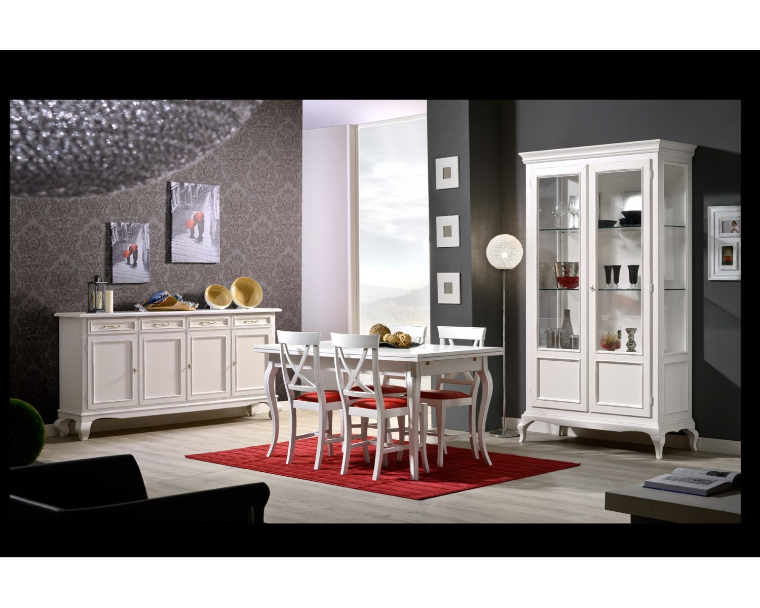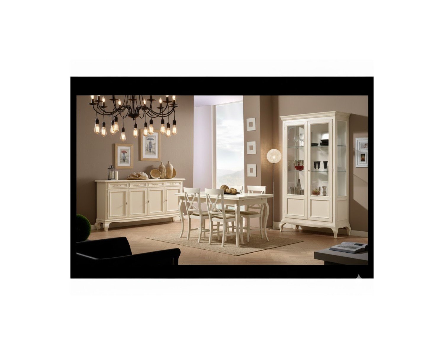 CREDENZA + VETRINA + TAVOLO + SEDIE (4 PEZZI