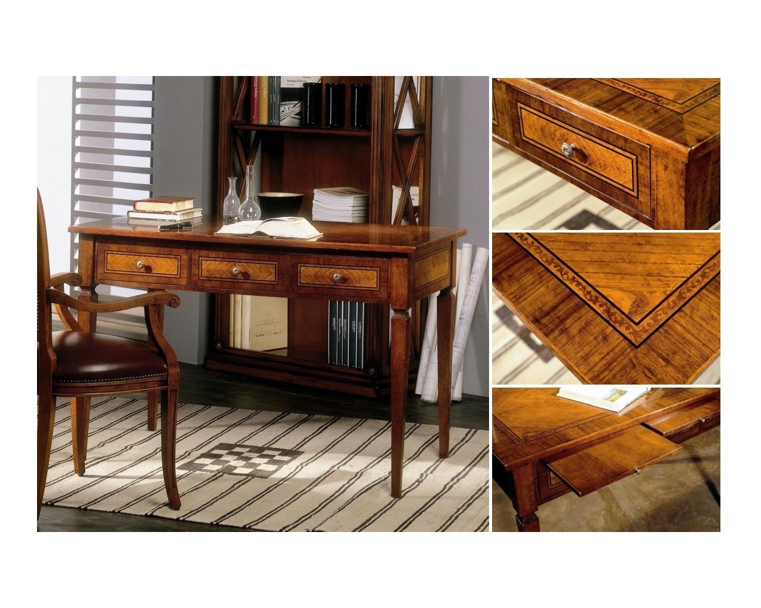 SCRIVANIA INTARSIATA 3 CASSETTI CON TIRETTI L.120 H.80 P.70